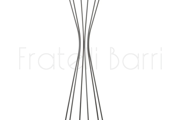 Напольная вешалка для одежды выполнена в современном стиле из окрашенного металла. Фигурная стойка из петель делает конструкцию воздушной, и не утяжеляет интерьер.