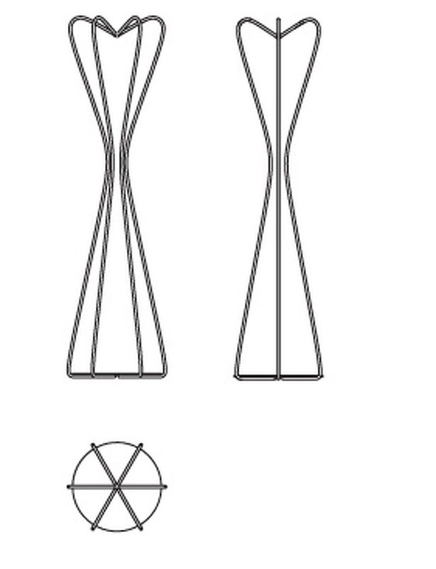 Напольная вешалка для одежды выполнена в современном стиле из окрашенного металла. Фигурная стойка из петель делает конструкцию воздушной, и не утяжеляет интерьер.