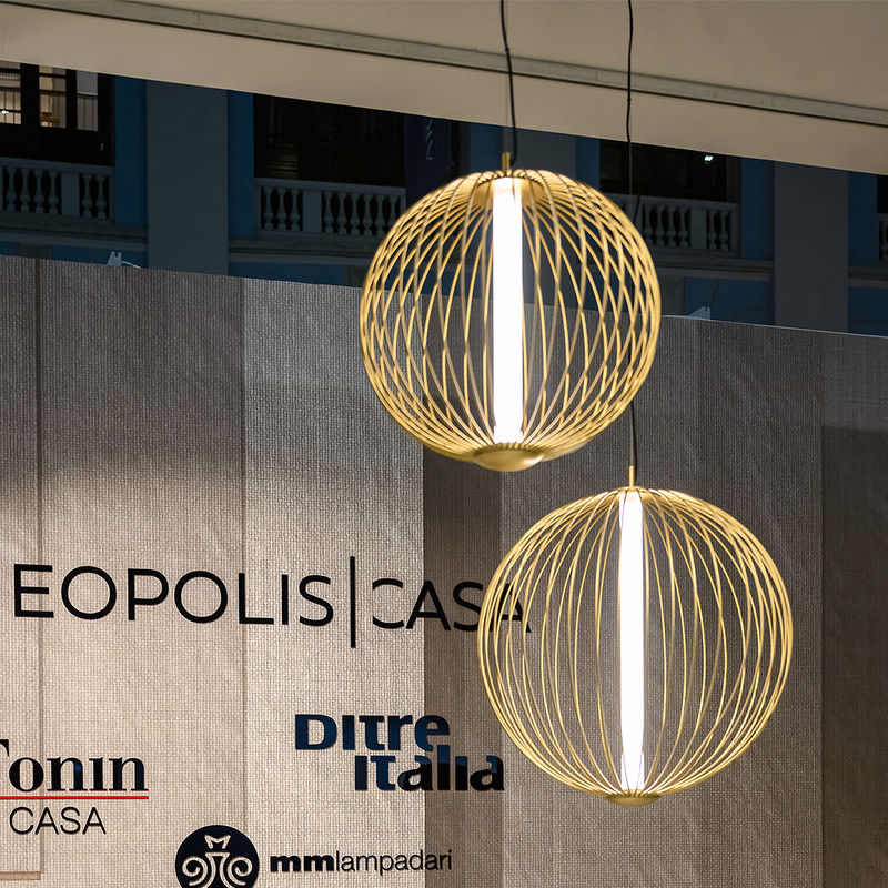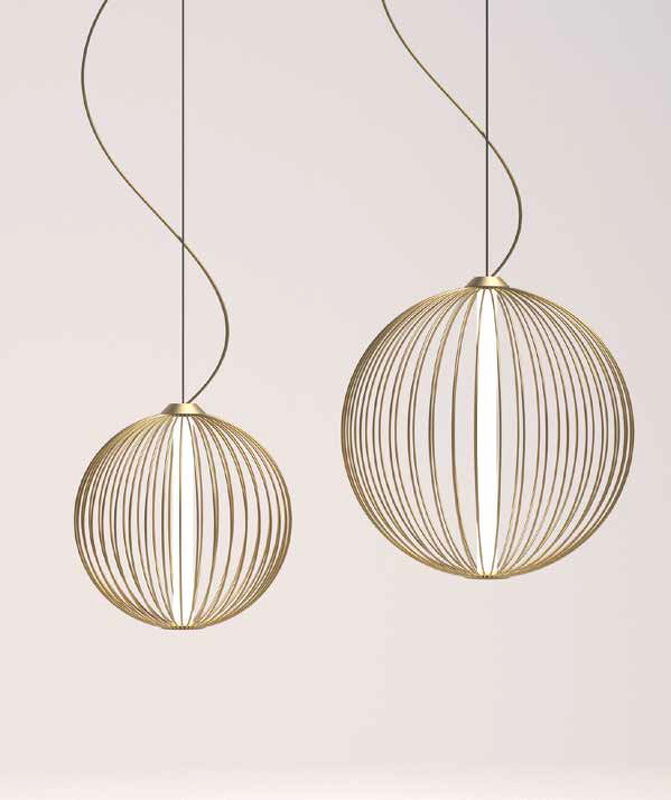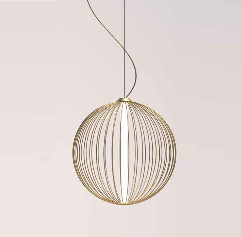 Люстра на длинном подвесе выполнена в стиле модерн.