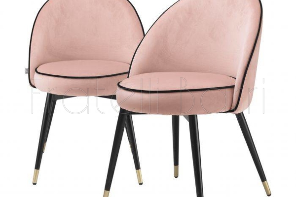 Стул Cooper (2 штуки), отделка розовый велюр Savona, черный матовый лак, латунь
