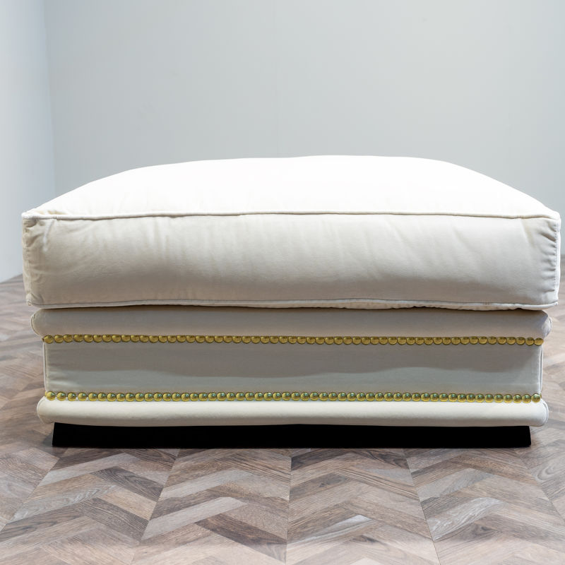 Пуфик Mayfair, отделка ткань LZ-Art serie A цвет 07, ножки Wengue_02, декоративные гвоздики golden brass studs 16mm