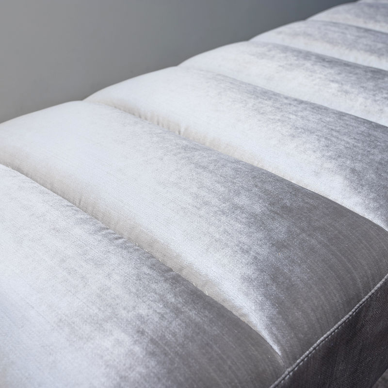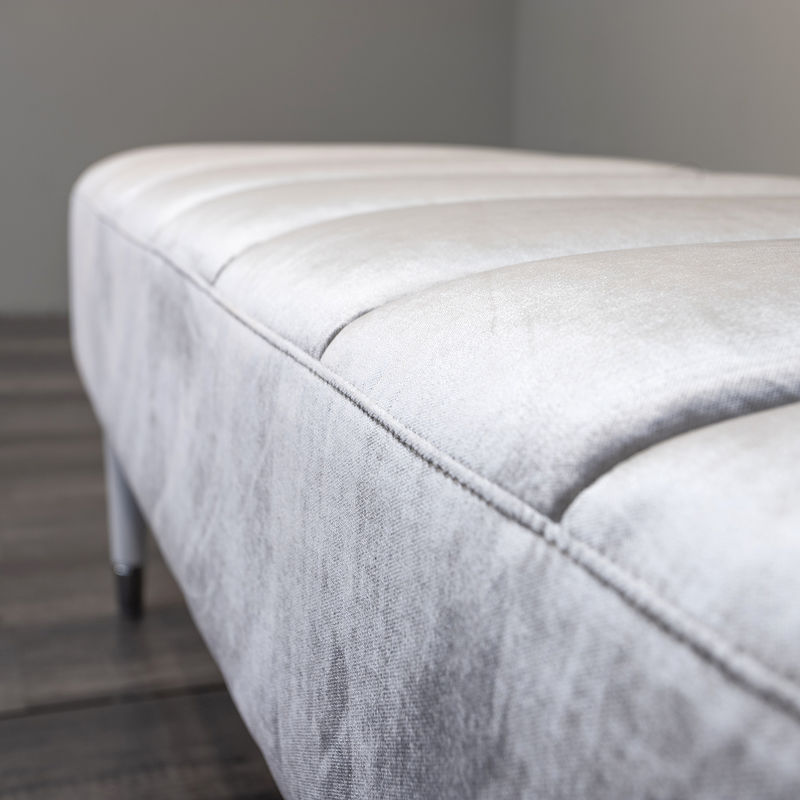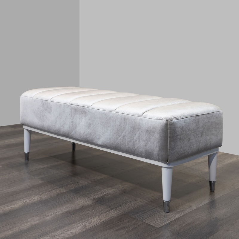 Банкетка, отделка белый глянцевый лак, ткань серебристо-серый велюр
