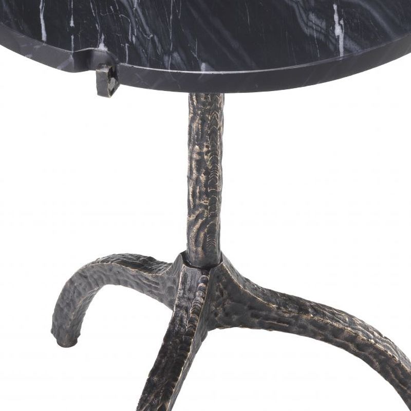 Приставной столик Cortina от Eichholtz органично сочетает роскошь и изысканность. Это культовое изделие с бронзовой отделкой и столешницей из черного мрамора имеет элегантную круглую форму.
