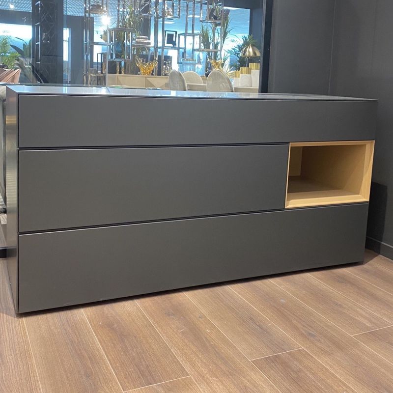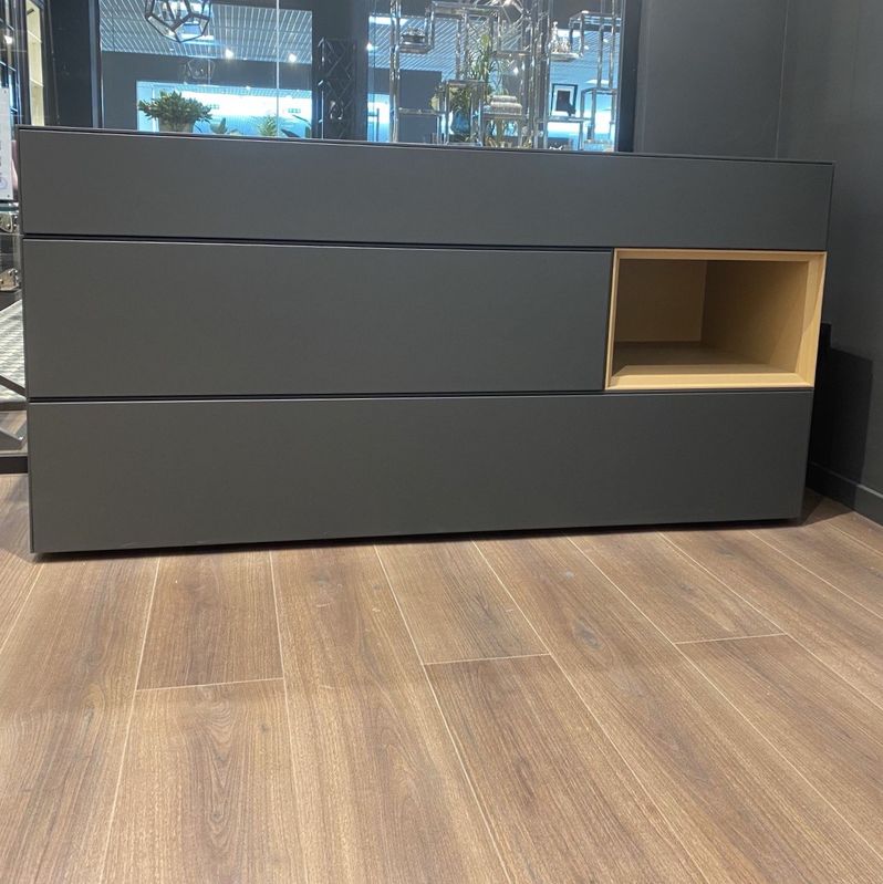 Комод от итальянской фабрики ALF Dafre, выполнен в современном стиле. Оснащен тремя выдвижными ящиками с системой открывания push pull.