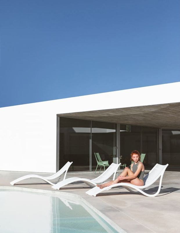 Шезлонги удобно и компактно хранить поставив друг на друга.