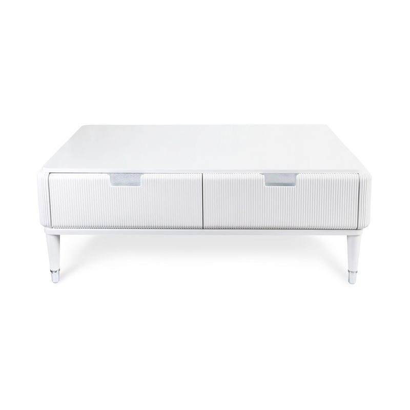 Журнальный стол, отделка белый блестящий лак, ручки хром
