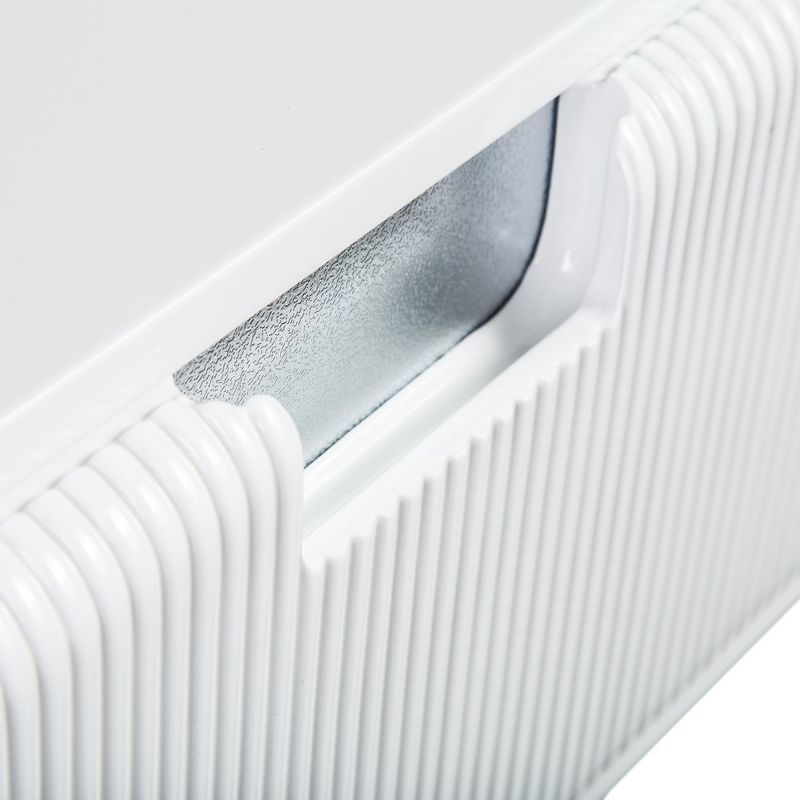 Выполнен из массива дерева и высококачественного МДФ класса Е1. Цвет фурнитуры - хром. Ящики оснащены доводчиками для плавного закрывания.
