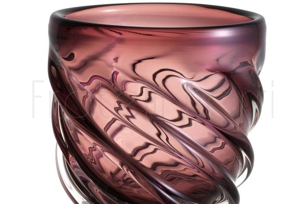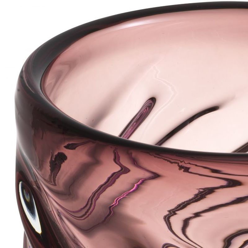 Вытянутая ваза с фигурным краем выполнена вручную из выдувного стекла.
