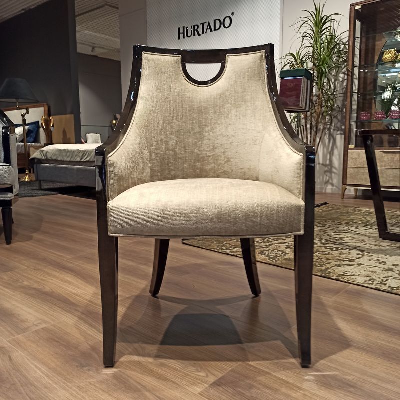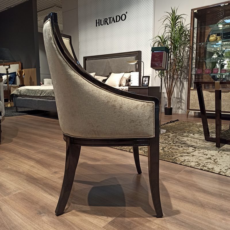 Стул с подлокотниками, отделка 785 глянцевый серый шпон эвкалипта, ткань C2 Pisa 05