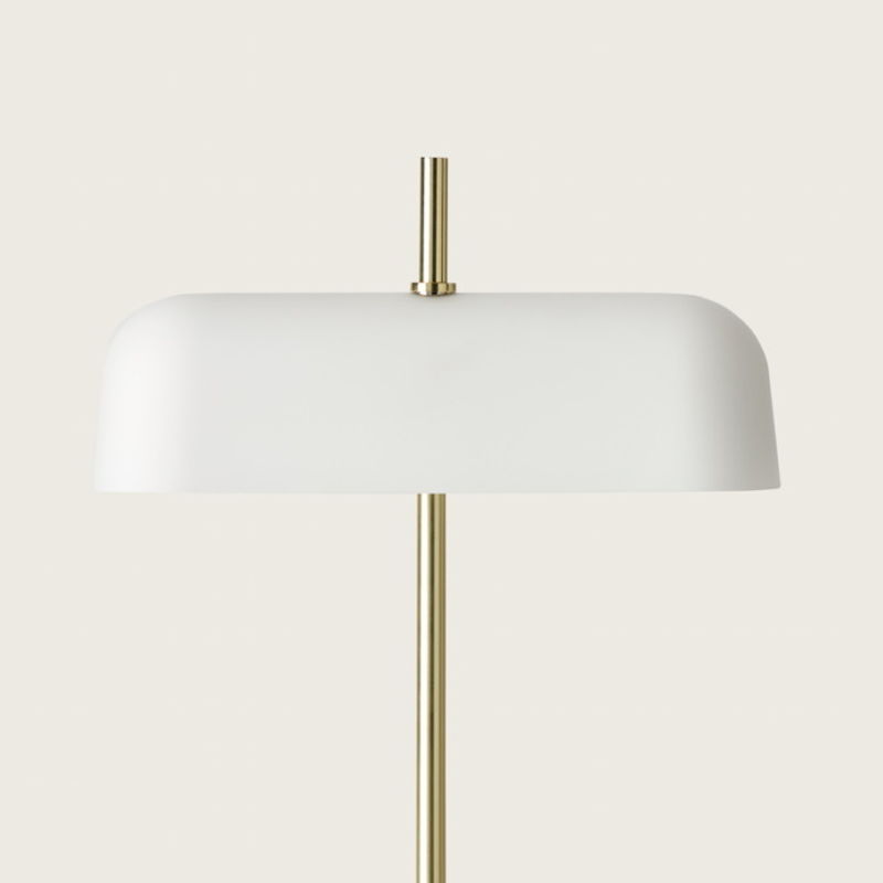 Стальное основание в цвете матовой латуни дополнено белым матовым плафоном. Минималистичный сдержанный дизайн, который адаптируется к различным стилям интерьера.