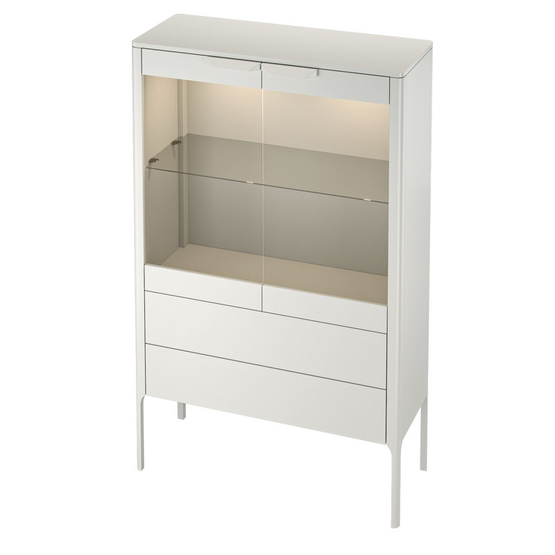 Корпус витрины изготовлен из высококачественного МДФ высокой плотности, Ножки и ручки - из массива дерева.