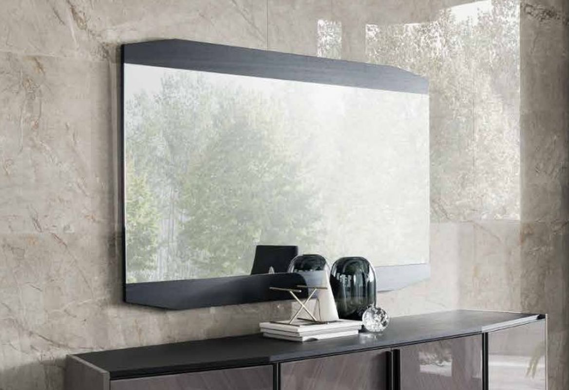 Зеркало от итальянской фабрики ALF Italia выполнено в современном стиле. По краям у данного зеркала находятся вставки, восполненные из глянцевого шпона эвкалипта и темного матового махагона.