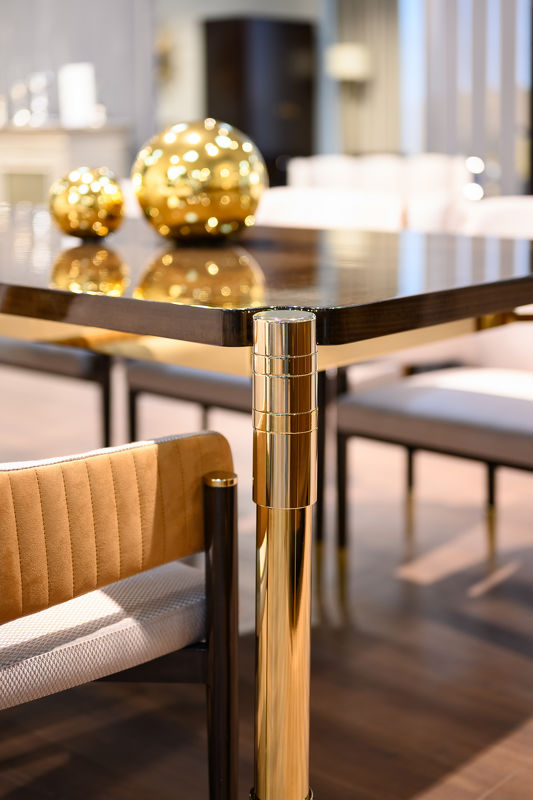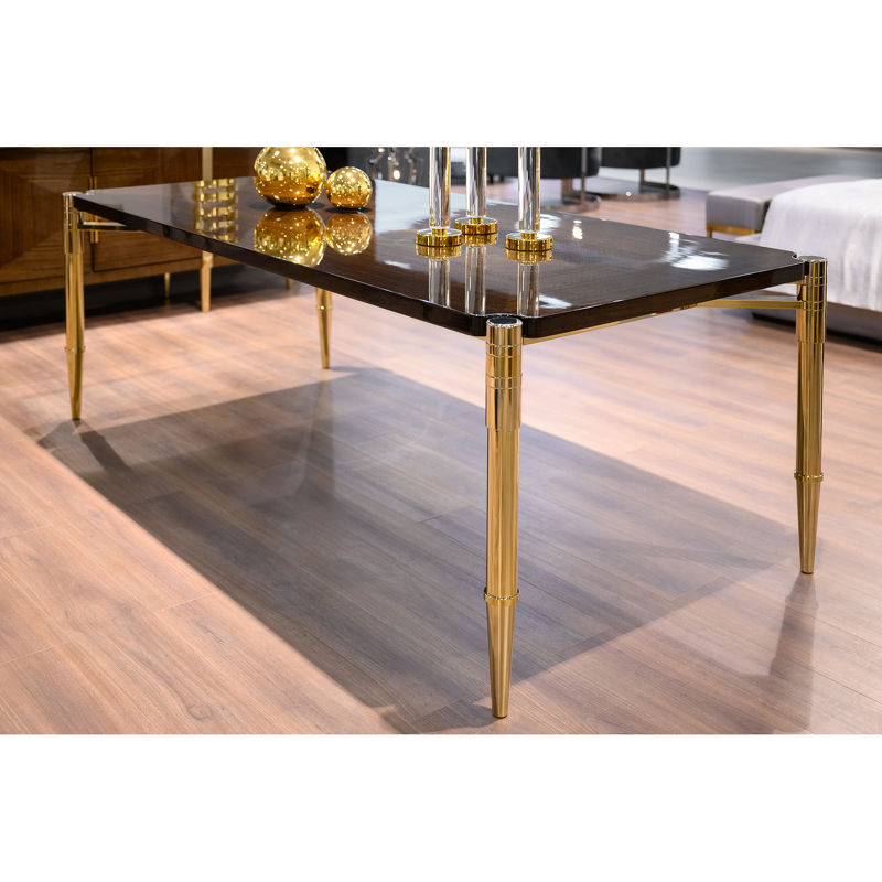 Обеденный стол Claire, отделка глянцевый эвкалипт, цвет металла золото