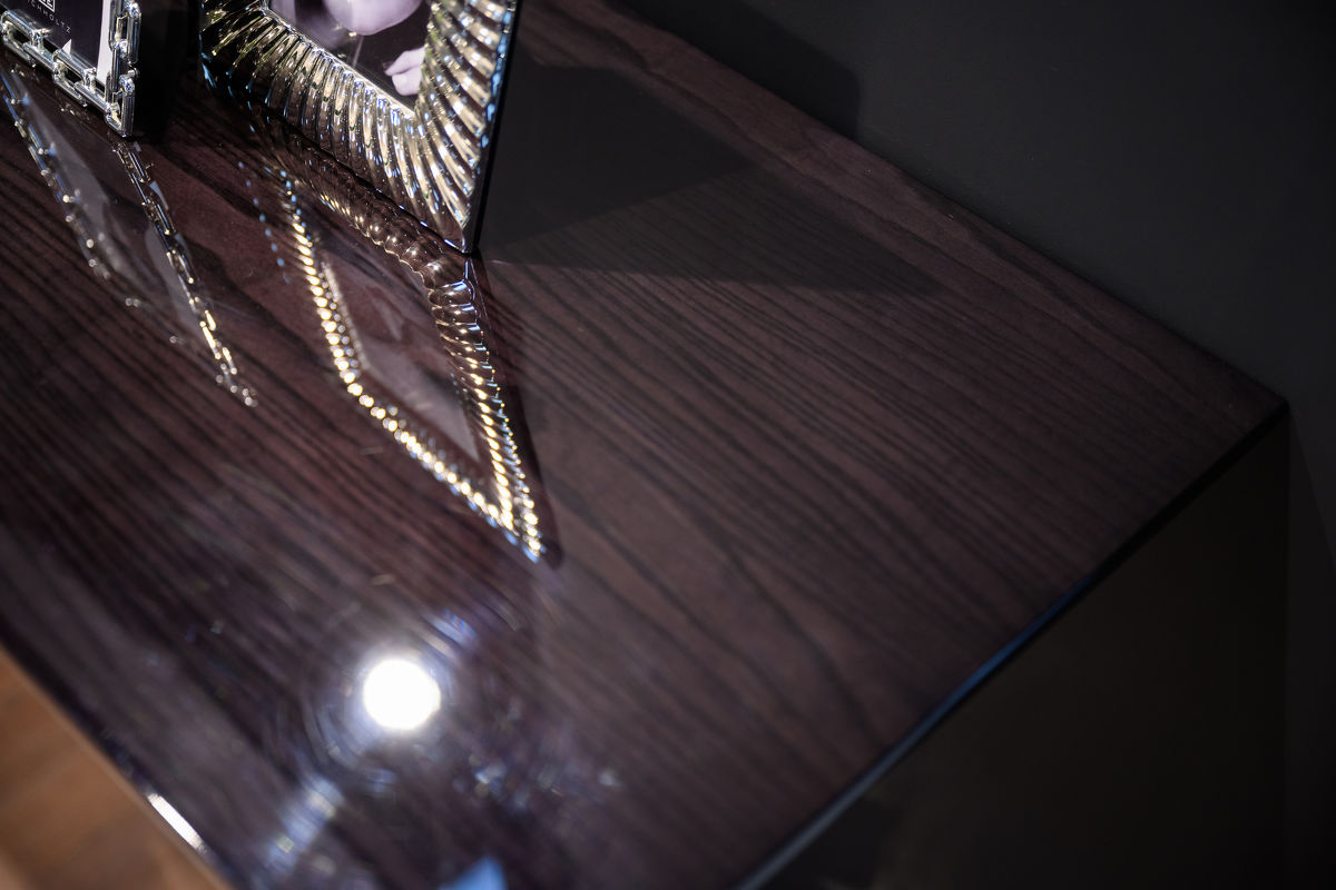 Консоль Vivienne, отделка глянцевый ясень Mocha, цвет металла дымчатый хром