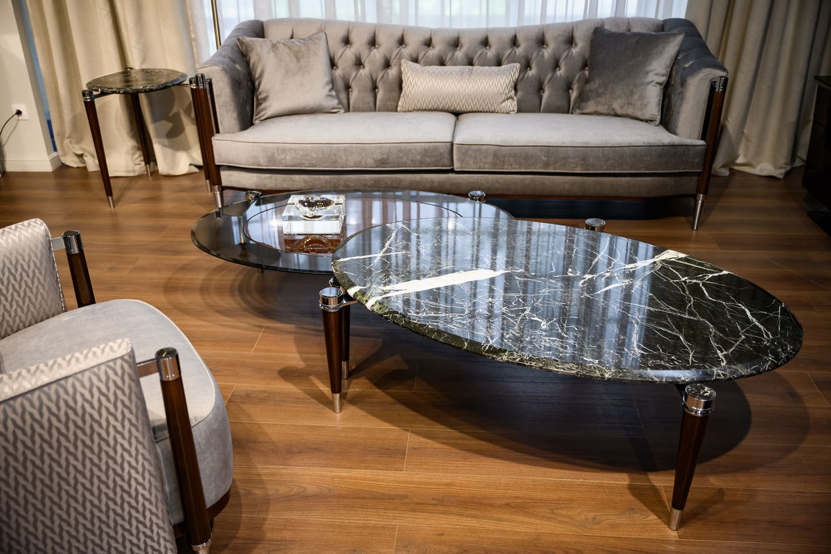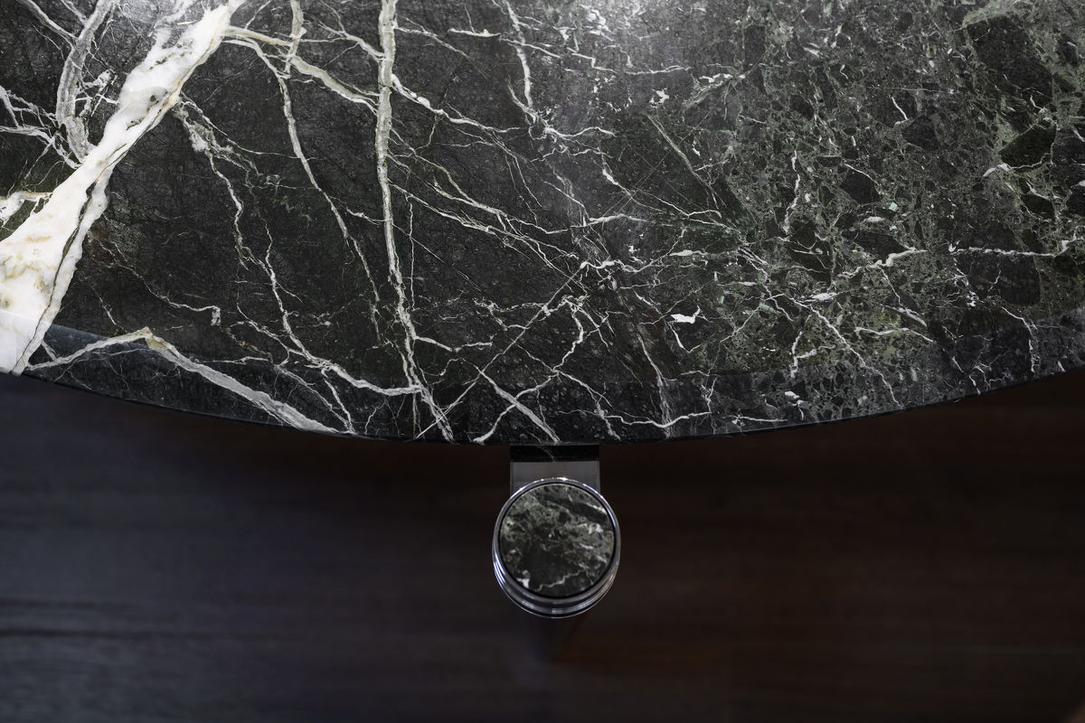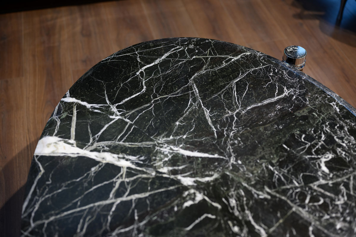 Журнальный столик Madison, отделка глянцевый орех 2018, цвет металла хром, топ мрамор Petroleum green