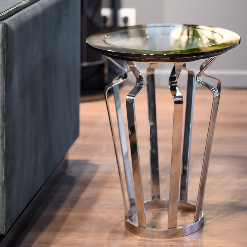 Приставной столик Vivienne, отделка глянцевый орех Crystal, цвет металла полированная сталь