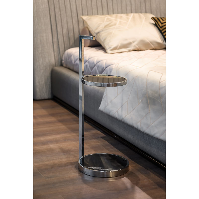 Приставной столик Vivienne, отделка черное стекло, мрамор Alexander black, цвет металла полированная сталь
