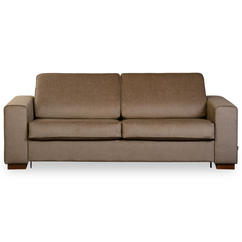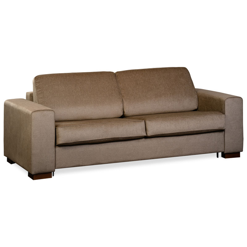 Модель раскладная, может использоваться как основное спальное место. Это прочный и долговечный диван в износостойкой ткани коричневого оттенка.