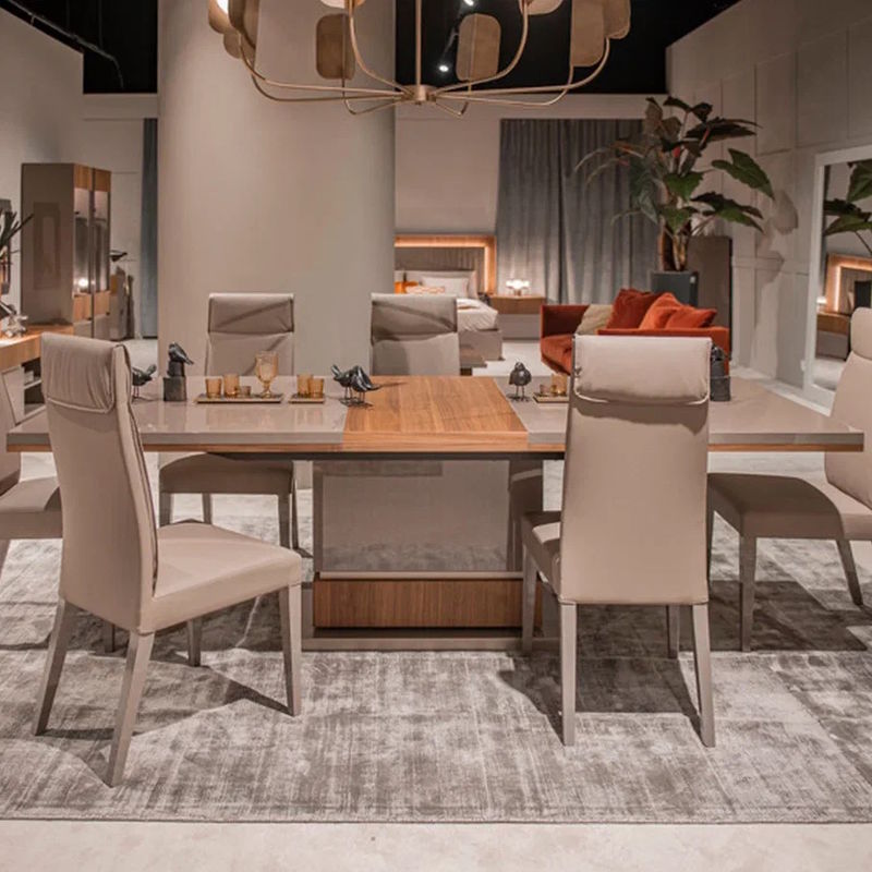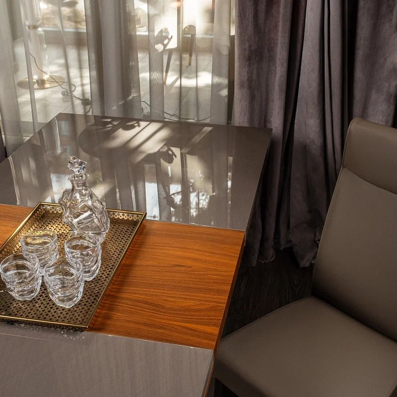Обеденный стол Corso Como, отделка шпон ореха Beveled, глянцевый бежевый лак