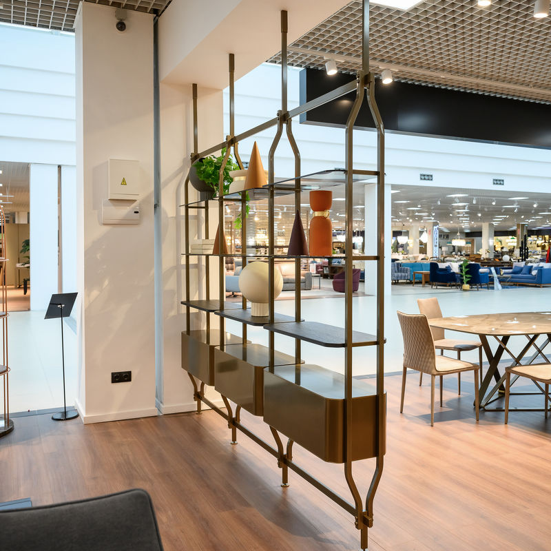 Высокий стеллаж от Bontempi Casa, выполненный в современном стиле. Стеллаж крепится к полу и потолку.