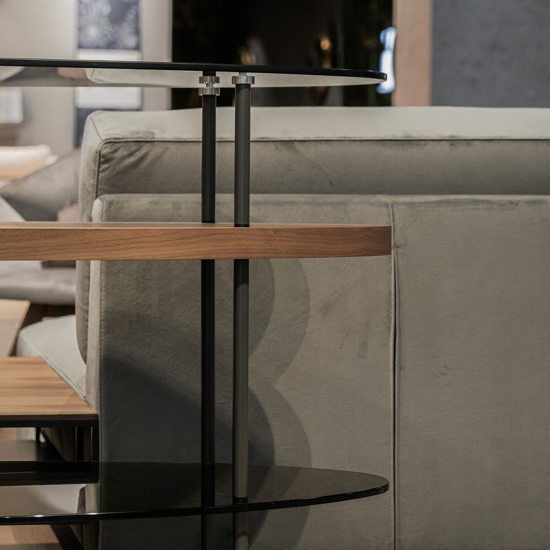 Консоль Beverly, отделка серый лак Piombo 013, орех Canaletto 031, дымчатое стекло