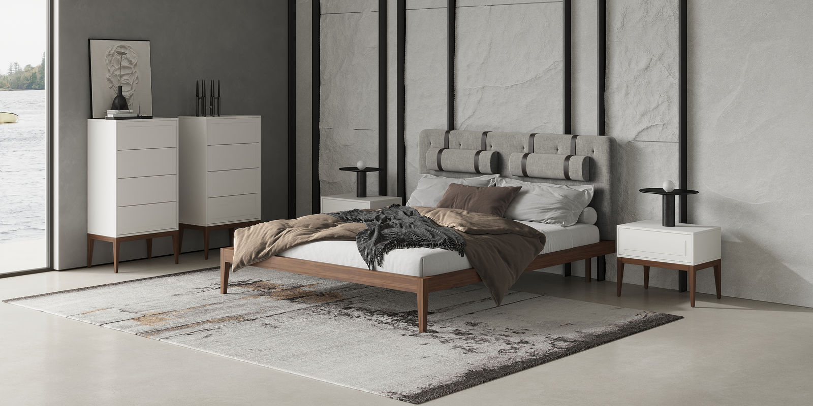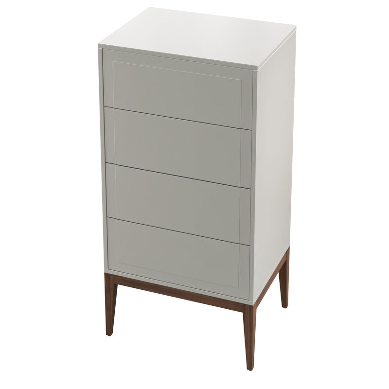 Высокий комод с четырьмя ящиками, на высоких ножках из коллекции Marbella от бренда MOD Interiors. Лаконичные фасады с интересной фрезеровкой.
