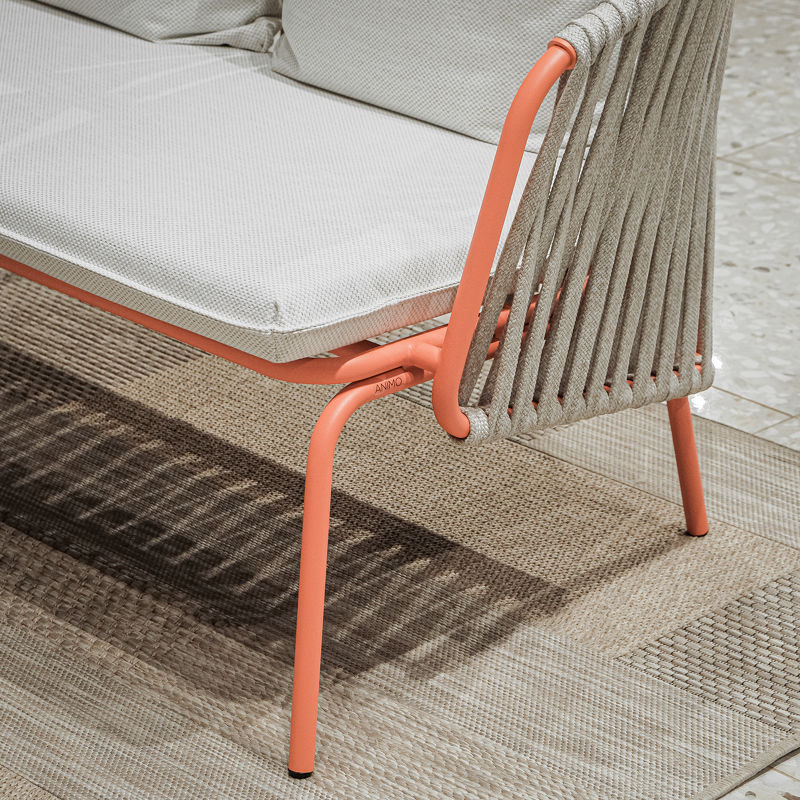 Диван из коллекции Ataman изготовлен из металла, который подвергается специальной антикоррозийной обработке. В качестве обивки выступает износостойкая и водостойкая коллекционная ткань. Все чехлы съемные, их можно подвергать машинной стирке, в том числе сам наполнитель-подушки. Веревка, используемая в модели для создания плетения, из коллекций Animo изготавливается специально для использования на открытом воздухе и состоит из синтетического материала, обладающего высокой устойчивостью к ультрафиолетовым лучам, истиранию и атмосферным воздействиям.