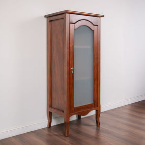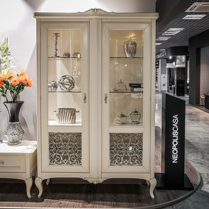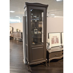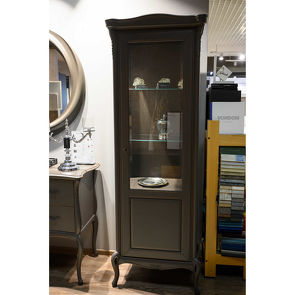 Витрина, отделка кремовый полуматовый лак, вставки и ручки серебро