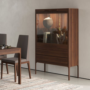 Витрина, отделка шпон ореха F, черный матовый лак, латунь, подсветка