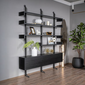 Стеллаж Plan, отделка отделка серый лак Carbon, черный ясень