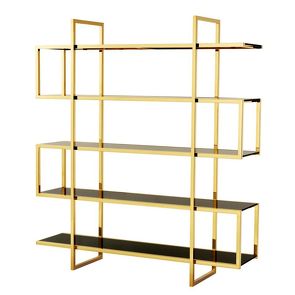 Стеллаж Lagonda, отделка матовая латунь, дымчатое стекло, шпон дуба